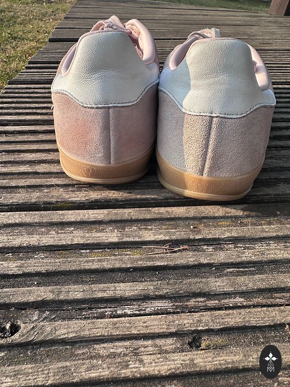 45,5 suurus. Kasutamise märke - kohas, kus jalg tõmbab, on väikesed plekid, samuti väike auk (vt pilte).
