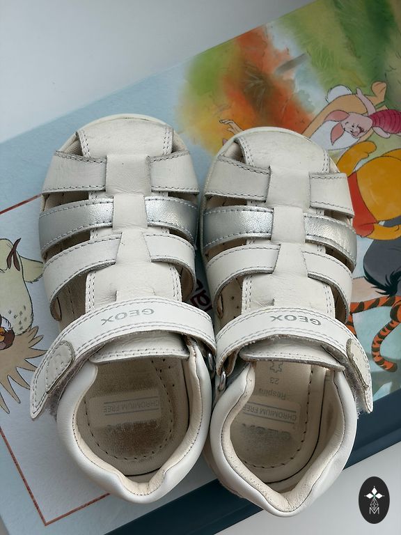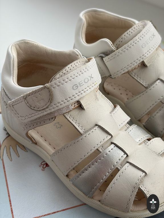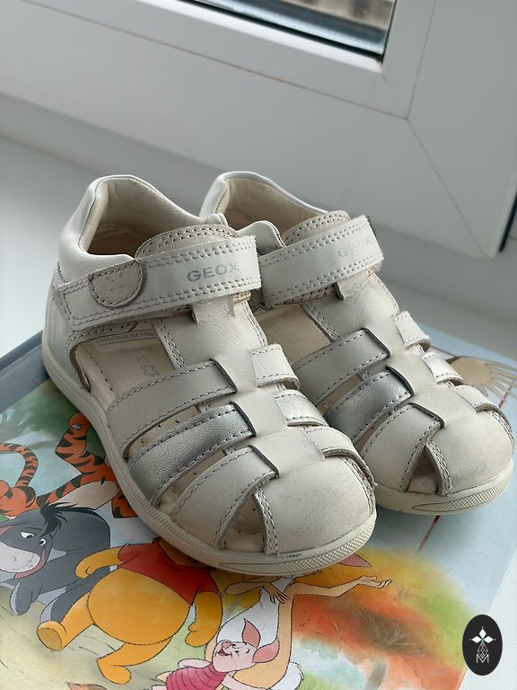 Labai, labai minimaliai darželyje naudoti batukai. Kaip nauji. Šie patogūs pačiai mergaitei apsiauti, lengvi ir šaunūs. Taip pat atrodo gerai. Su tokiais pačiais prabėgo visą praėjusią vasarą. Bet šie skubiai buvo skirti darželiui, kažkuriame tarpinio dydžio etape šiek tiek vaikščiojo.