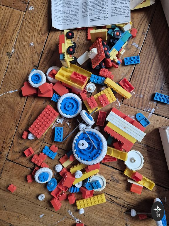 Detaļas no diviem komplektiem, vienlaicīgi var darboties trīs bērni. Nezinu, kā šobrīd ir ar gleznojamās mīklas rezerves tūbiņām, kādreiz tās varēja nopirkt atsevišķi. Mūsu komplektā nekas prātīgs nav palicis, bet došu atlikumus līdzi, un pieņemu, ka attapīga mamma var atrast recepti un pagatavot līdzīgu masu mājās. Sūtīšana nav iekļauta cenā.