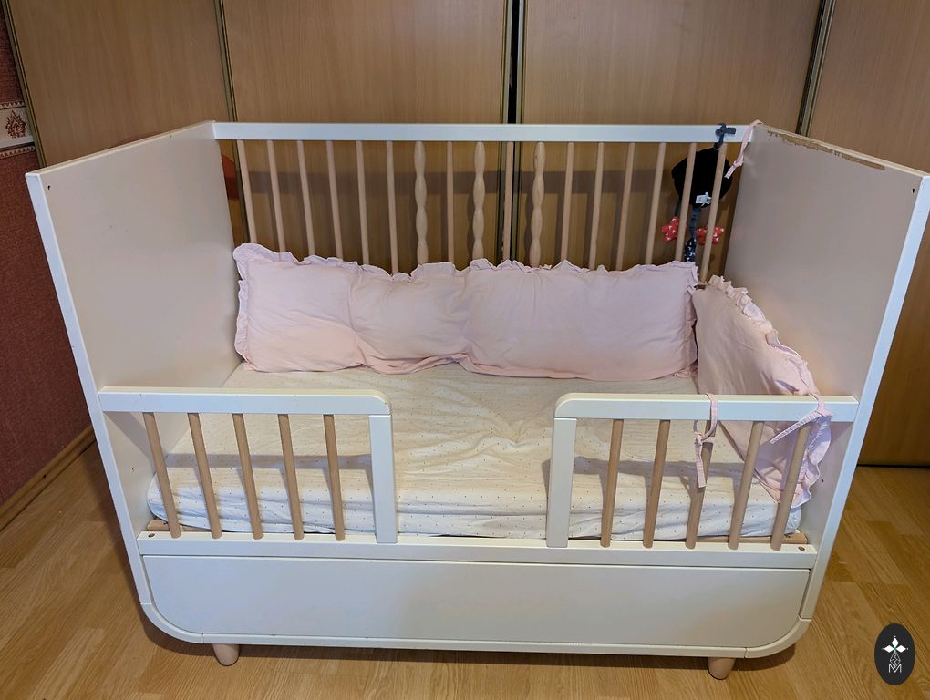 Voodi saab kokku panna 90 cm kuni 160 cm pikkuseks, madratsi laius on umbes 60 cm. Kaasa võin anda kookoskiududega täidetud madratsi, mille pikkus on 120 cm.