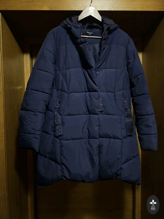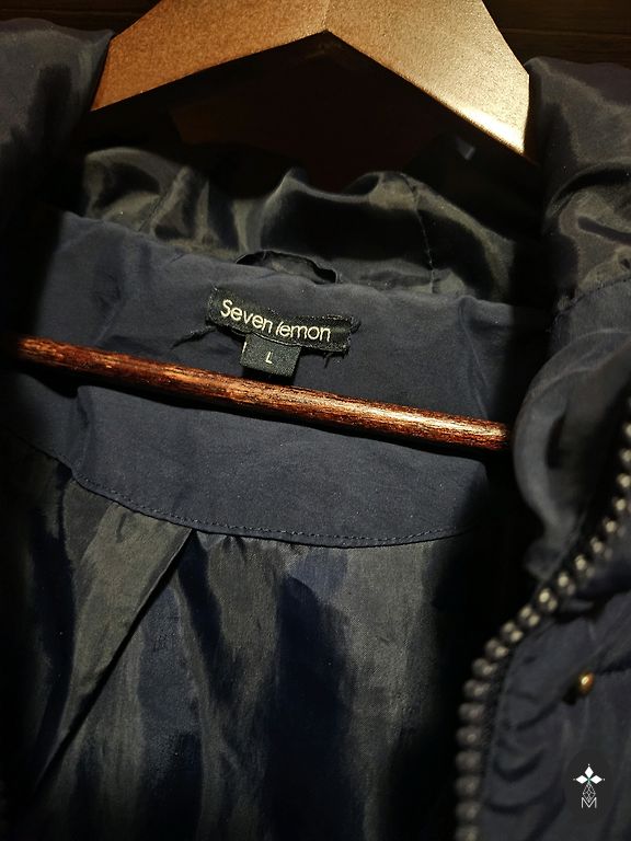 52% шерсть. Воротник съемный. Один карман порван.