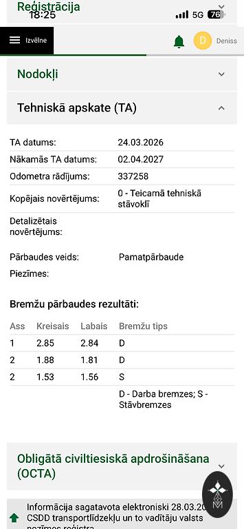 Технический осмотр: до 19.04.2026