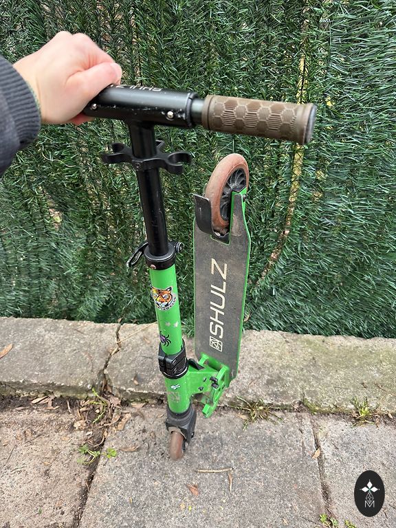Tehniliselt on ratas heas seisukorras, midagi pole katki. Visuaalselt on siiski kriimustusi, hõõrdumisjälgi, istme serv on kulunud. See on stabiilne, tugev, vastupidav sõiduvahend.