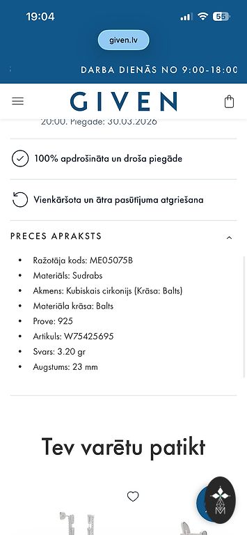 | Materiāls | Sudrabs |