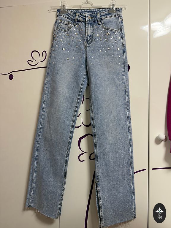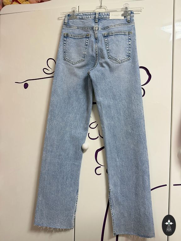 Cool, stylish wide jeans. The fabric is not thin.