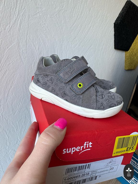 Patogūs Superfit sportbačiai, avėjo 1 vaikas. Šiek tiek nudraskyti priekiniai kraštai ir vidinės pusės šiek tiek pradeda irti siūlai - prašome žiūrėti nuotraukas - vienai daugiau, kitai mažiau. Lipdukas geras. Išplautos papildomos nuotraukos susirašinėjime. Kulno dalis viduje nėra nudėvėta - žiūrėkite paskutinę nuotrauką + Siuntimas.