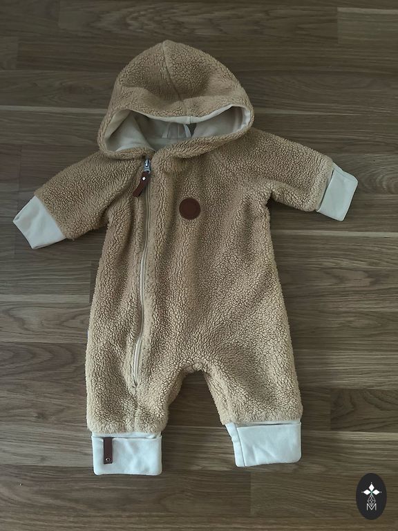 Lodger jumpsuit, 2 hats, mittens, and 2 pairs of "booties" (unused)