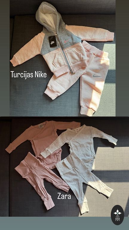 Parduodu dukters drabužius, 56 dydis. Pirkti nauji, dėvėti atsargiai. Yra Zara, Lindex ir Name It drabužiai. Komplekte bodžiai, kelnės, šliaužtinukai, pižamos, švarkeliai, suknelės ir kepuraitės.