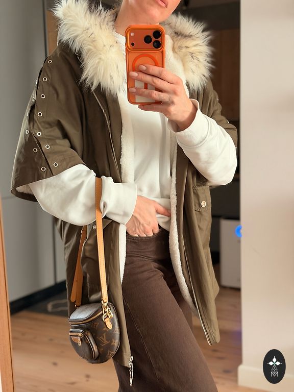 Iekšpusē kabata ar rāvējslēdzēju. Ārpusē — papildu kabata.