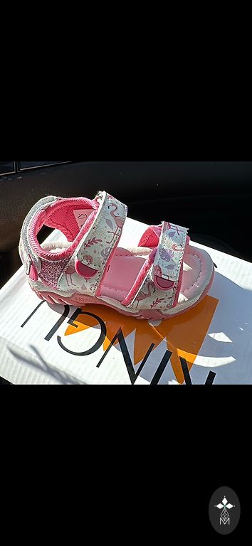 suveks mõeldud jalatsid - vähe kantud sandaalid. Kinnitused on nii rihmadel kui ka sandaalide peal, mugavad, sest saab reguleerida laiust. Kinnitused püsivad väga hästi.