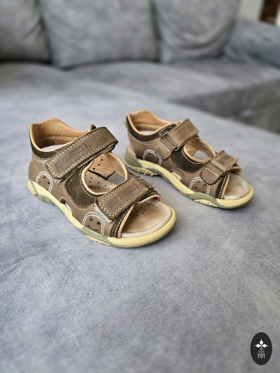 Sandales naturaalsest nahast, kantud ainult lasteaias, seetõttu puhtad ja heas seisukorras. Sisetald 15,5 cm.