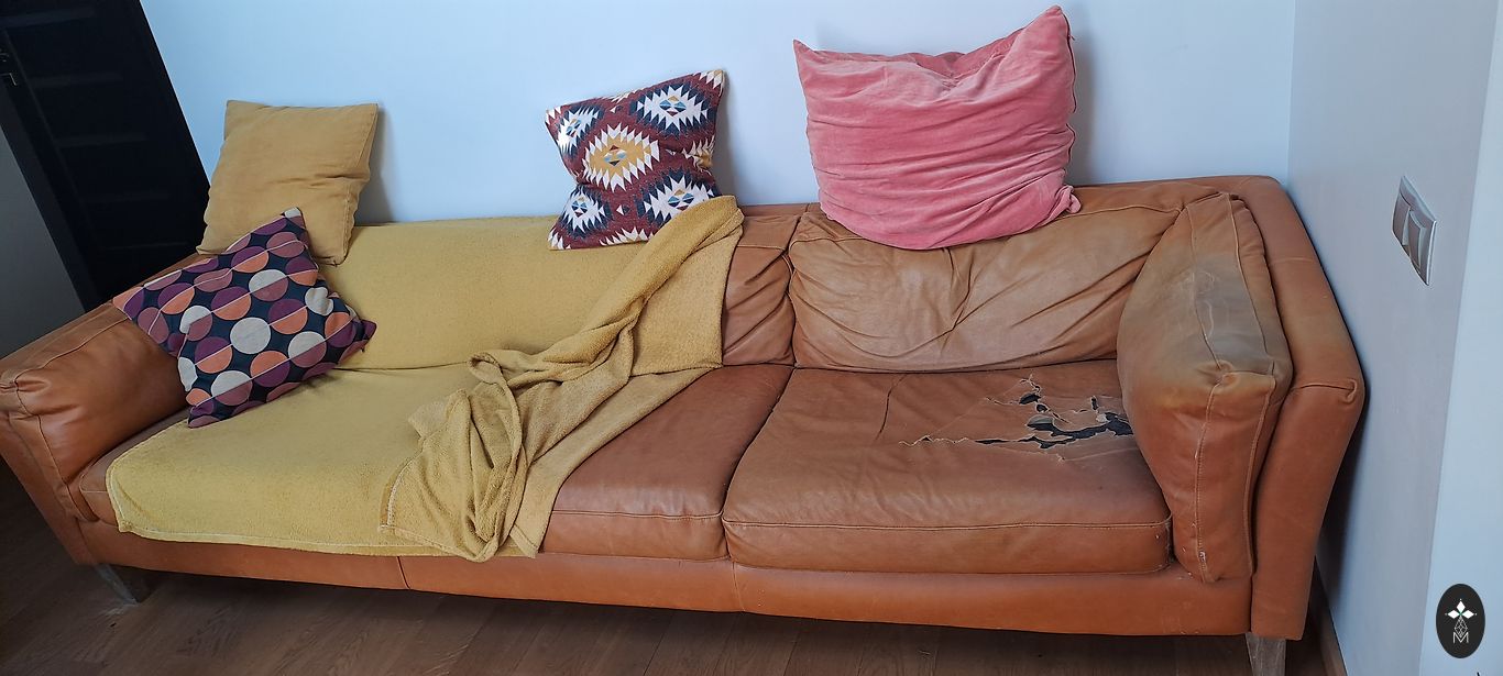 Pārdodu komplektu - dīvāns un divi krēsli. Materiāls - dabīgā āda. Mēbeles ir ļoti ērtas sēdēšanai. Krēsli griežas ap savu asi. Kopumā priekšmeti ir labā stāvoklī. Tomēr uz viena krēsla vienā vietā ir ādas nodilums augšpusē. Priekšmetus var iegādāties atsevišķi. Cena ir apspriežama. Priekšmetu izmēri:
