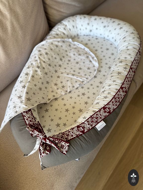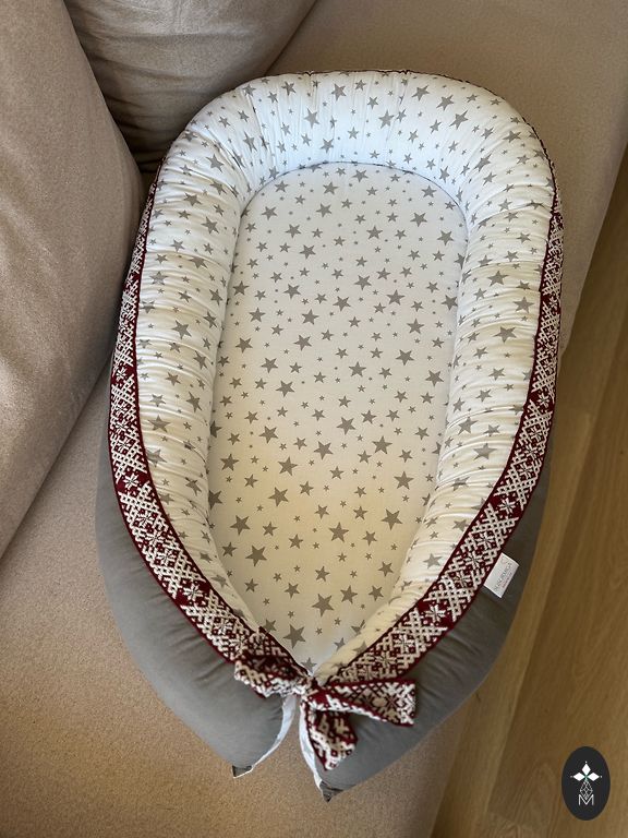 Not used because the baby sleeps with the parents. We will also provide a mattress. The bed has a drop-down side to attach it to the parents' bed. The height of the bed is adjustable.
