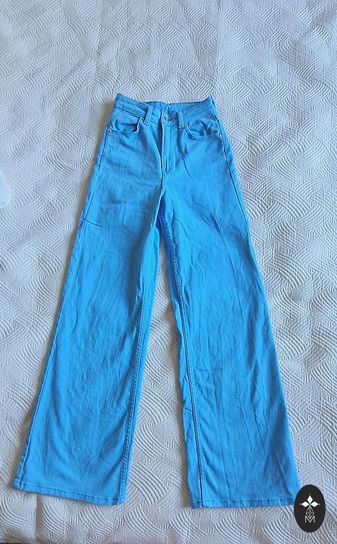 Aktuaalne mudel WIDE HIGH WAIST JEANS, kõrge vöökoht.