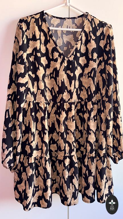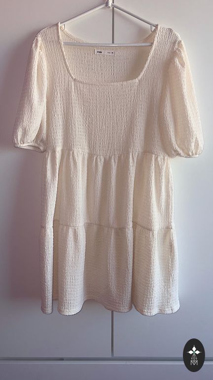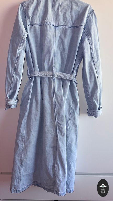 Plona be pamušalo, be kišenių, bet užsidėjus aiškiai priglunda, krenta iki 113 cm