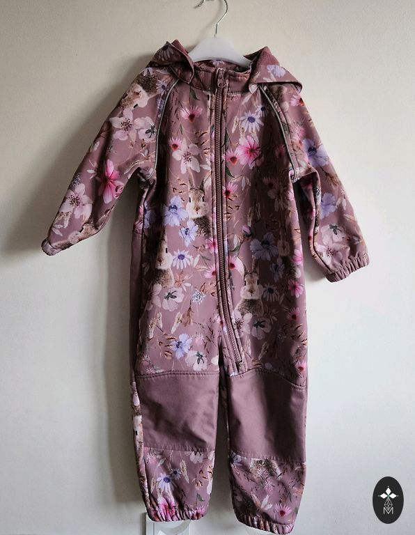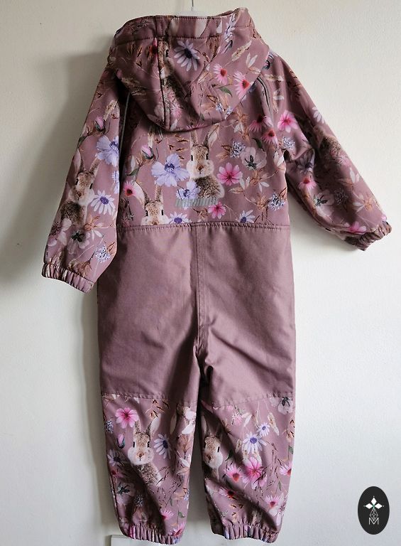 Комбинезон размера 86, на коленях 3 очень маленькие более темные полоски, которые возможно можно отстирать. На задней части нет ни повреждений, ни царапин.