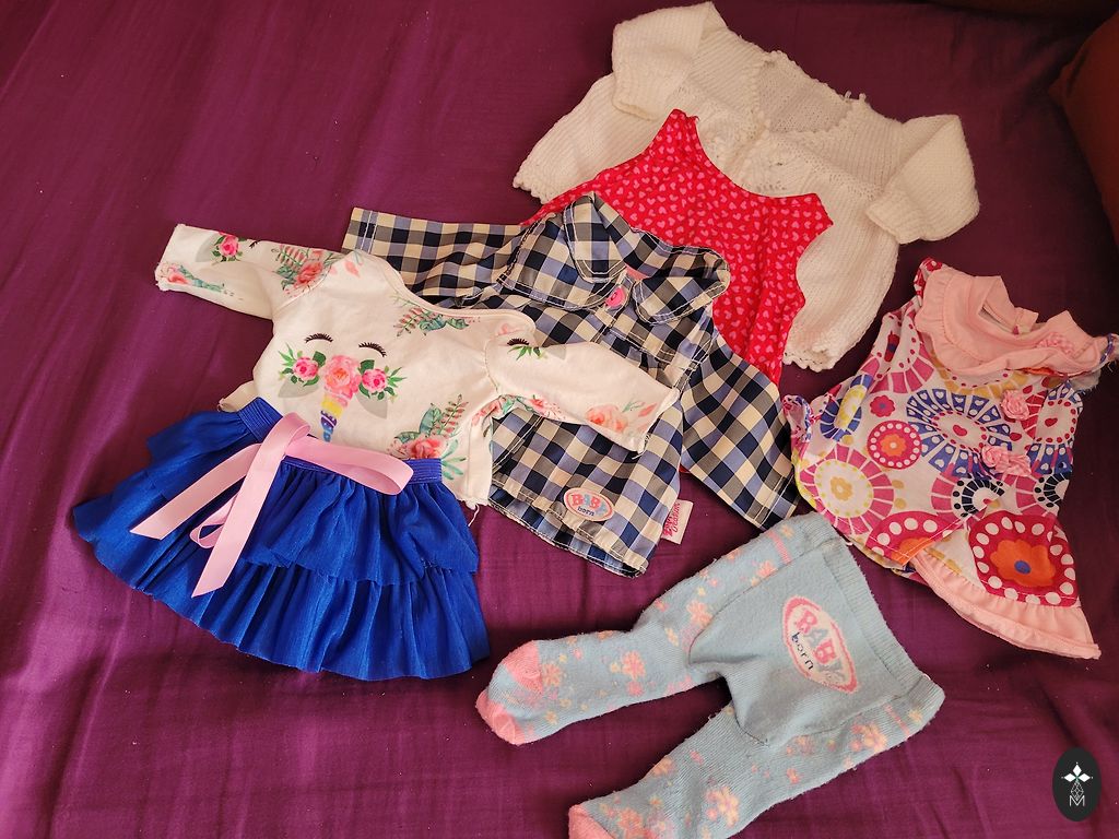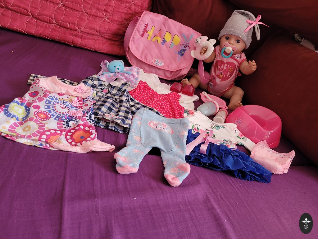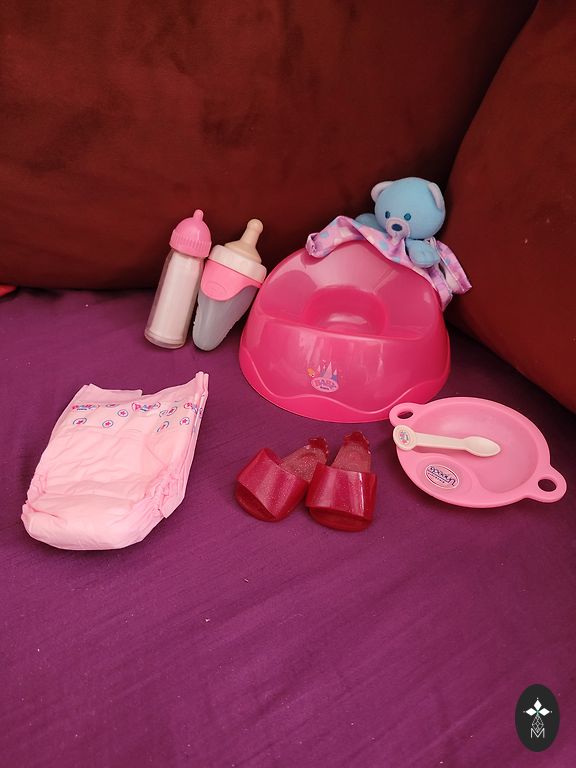 Baby born baby and all possible accessories. The baby has scratches and other signs of wear, as do the clothes.