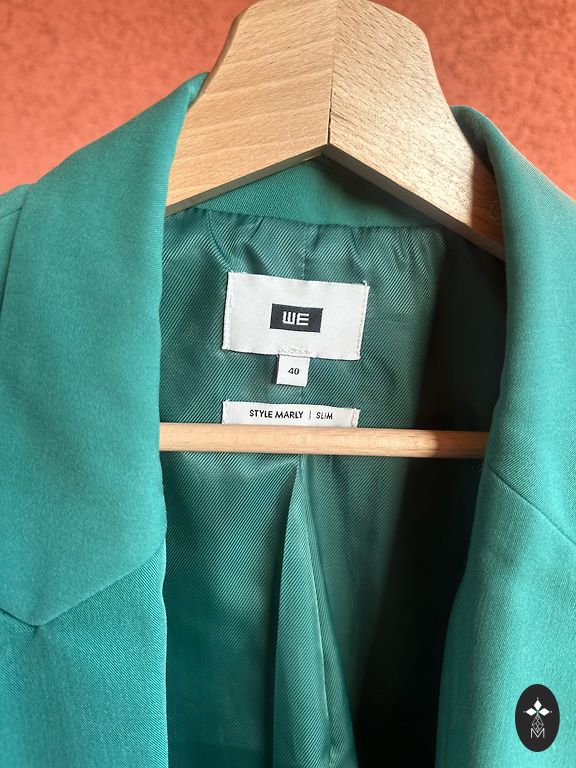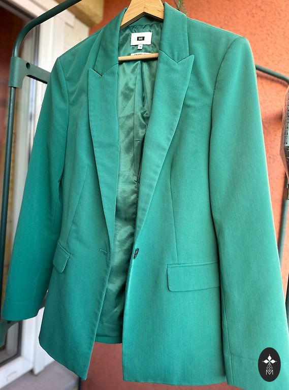 Jakk väga ilusas, sügavas smaragdivärvi. 100% vill, väga kerge, mitte torkiv, veidi elastne ja hästi istuv. Kinnis meeste poolel. Kantud paar korda.