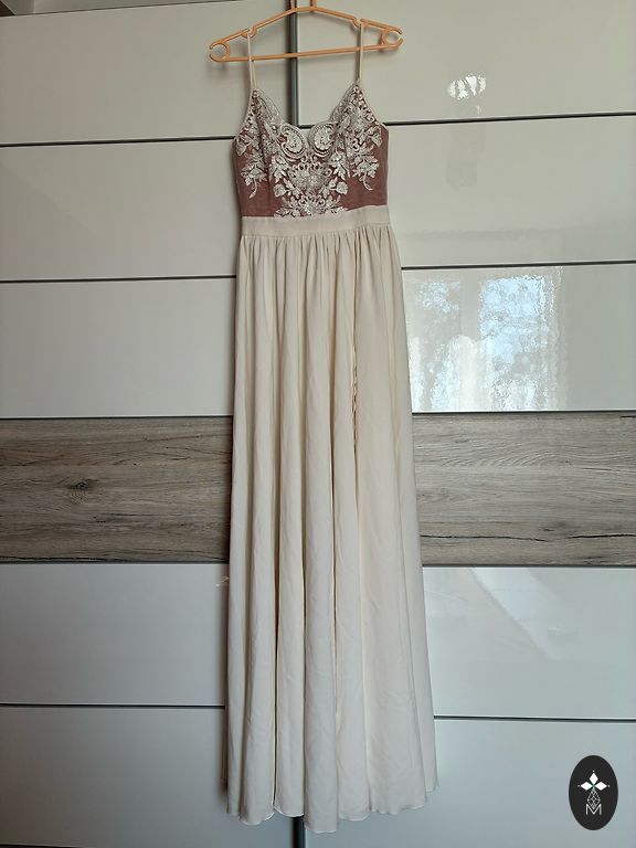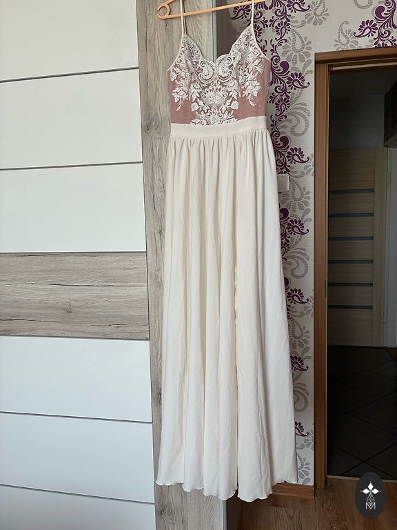 Ilga suknelė be petnešų, kartu duosiu nėrinių apsiaustą, rankinę ir papuošalus. Ūgis 165 cm, suknelę reikėjo dėvėti su aukštakulniais bateliais. 💃🏼