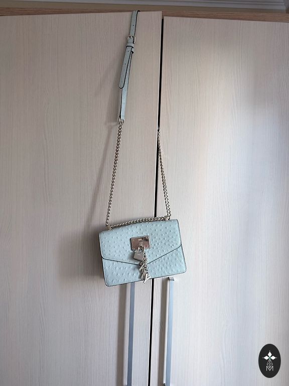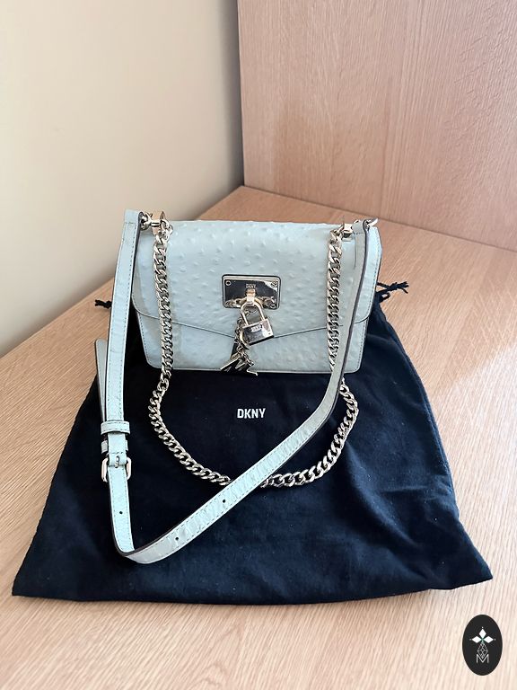DKNY originaalne käekott õrna roosa värviga ja dekoratiivse tekstuuriga. Sellel on peamine sektsioon ja väiksem tasku, kotil on reguleeritav rihm. Kõrgus: 15 cm, laius: 21 cm, sügavus: 7 cm. Naiselik mudel, mis sobib nii igapäevaeluks kui ka pidustusteks.