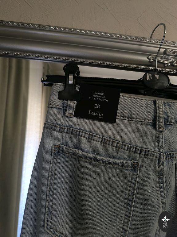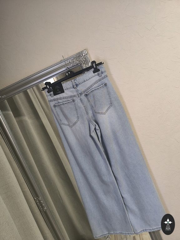 Klasikinės mėlynos spalvos Сropa džinsai su šiek tiek nusidėvėjusiu efektu. Aukštas juosmuo, laisvas kirpimas klubų srityje ir laipsniškas susiaurėjimas link apačios daro juos mėgstamu mamos kirpimu ( mom fit).