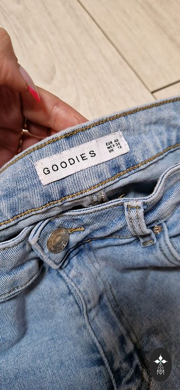 Norādīts L,bet reāli M augstā jostas vietā.Plēsumi un perlītes