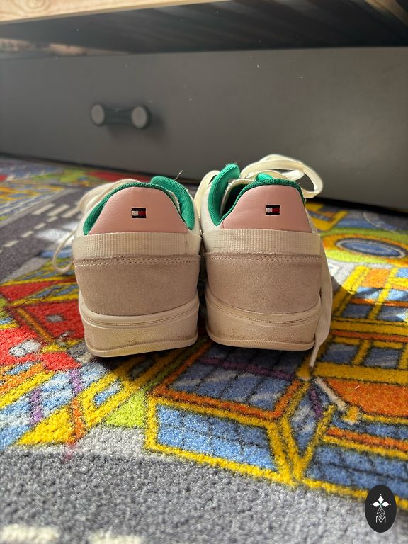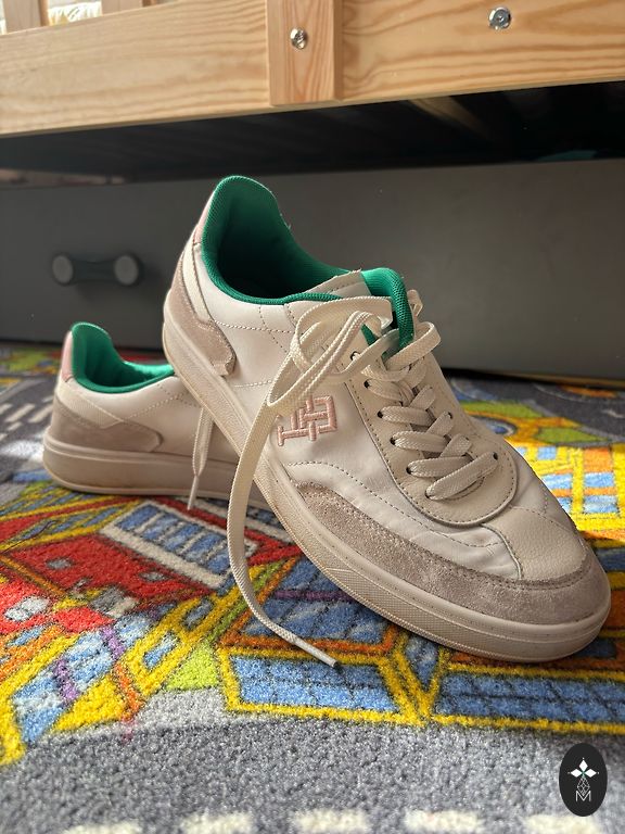 Neliels pleķītis vienai kājai (skat. pedējo bildi). Audums - zamšs. Šis nav ierastais Air Force 1 modelis, Sage modelim ir siluets šaurāks.