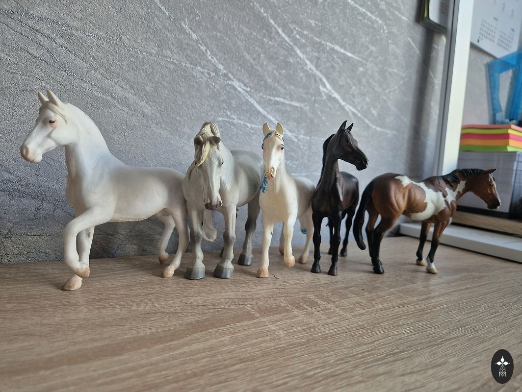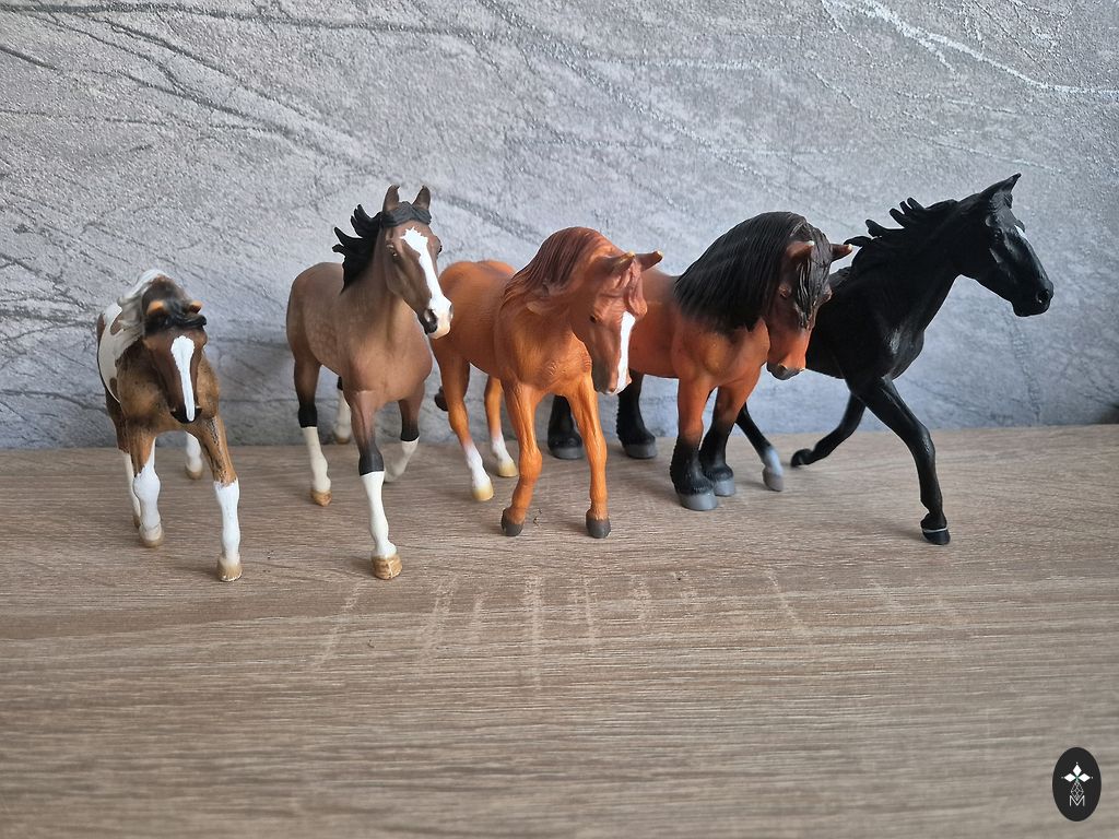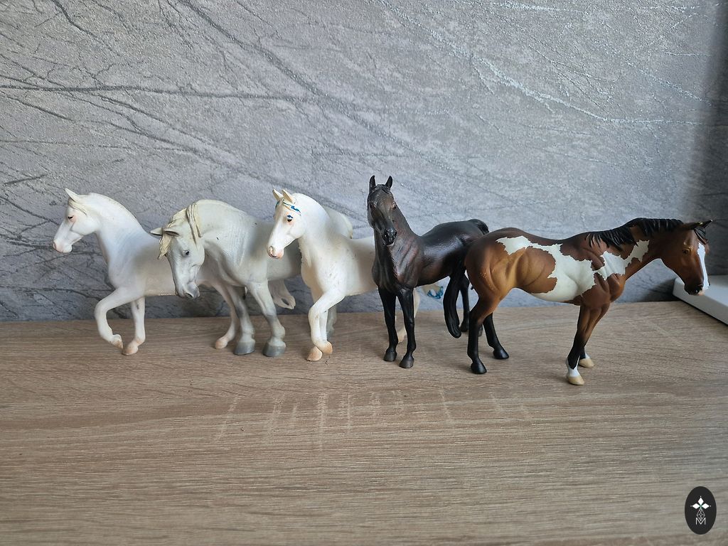 5 Collecta firma hobust. Nii mänguasjad kui ka kogutavad kujukesed. Tumedal hobusel on kõrv veidi katki.