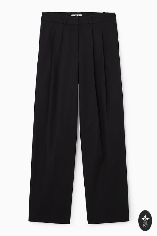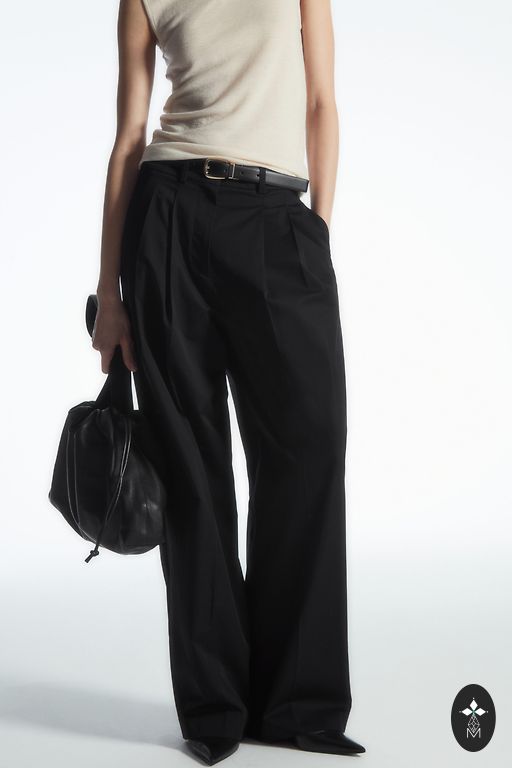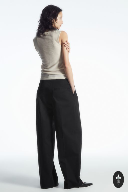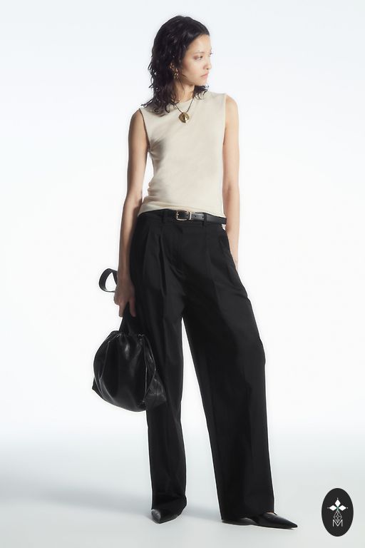 tiesaus kirpimo, vidutinio pločio, aukštu liemeniu.