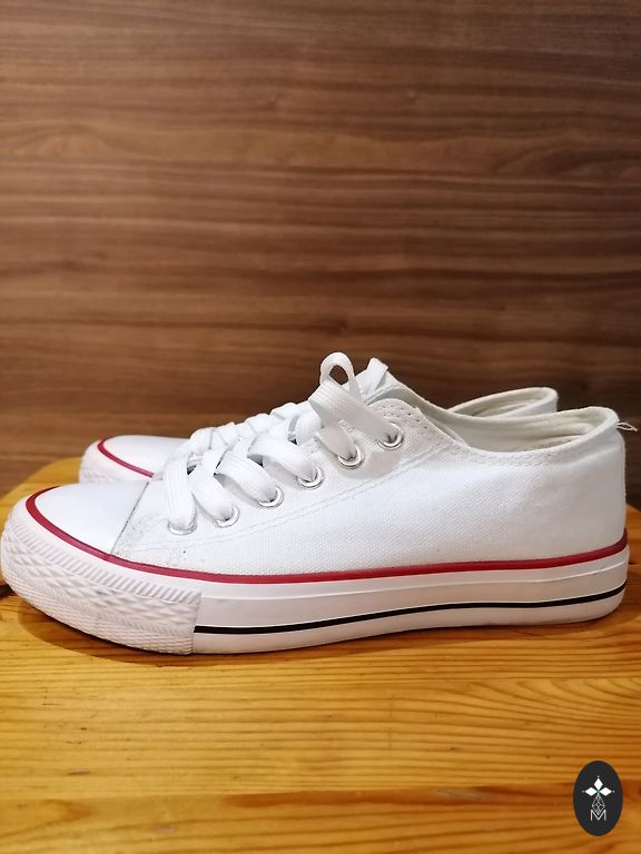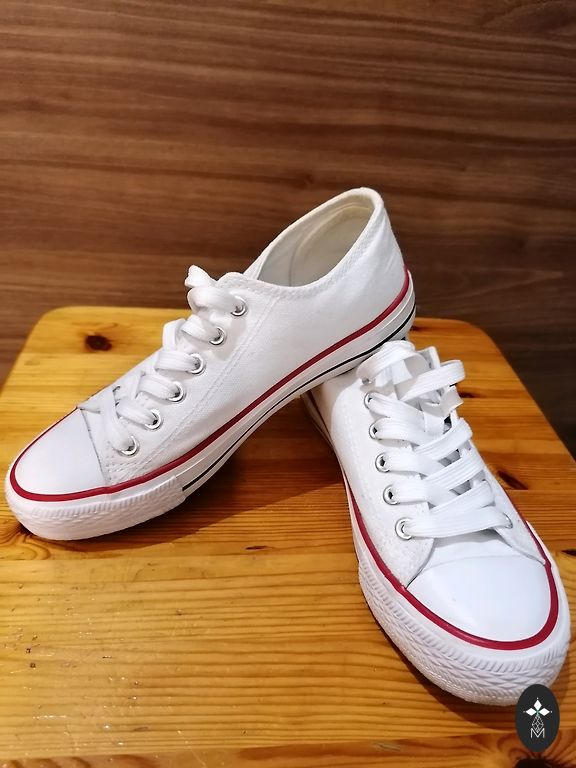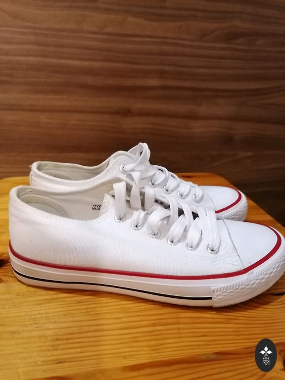 Pārdodu Converse kediņas 23 izmerrs, iekšpēda 14 cm. Kediņas purngaliem , braucot ar ritenīti nodilusi gumija 1 bildē redzams, pārējais viss lieliski.