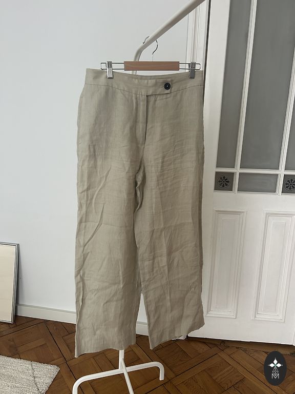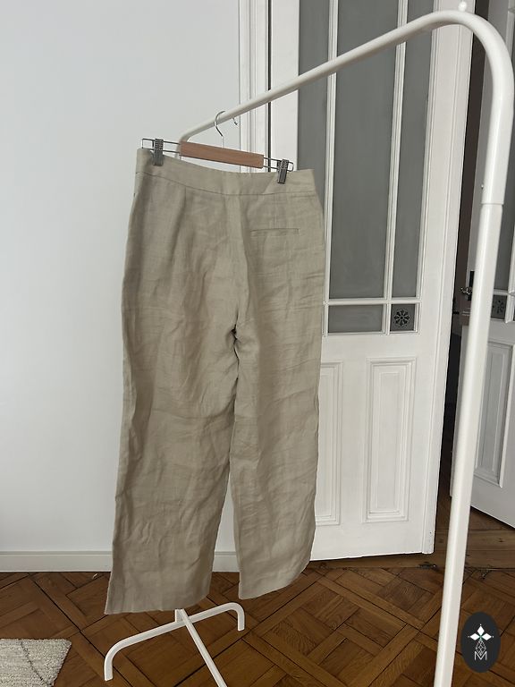 W 32 cm, pükste üldpikkus 104 cm, sisesäär 74 cm. Valmistatud liotsellist, ei veni.
