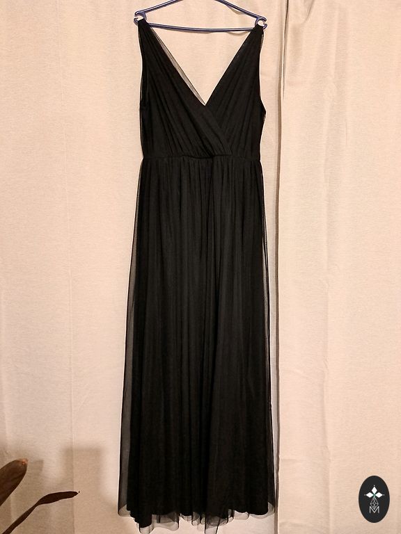 Kleita A siluets, izmērs 16, garums 122, pleci 42, pa piedurkni 52x2, viduklis 50x2, piedurkne 33 cm, odere visā garumā 100% kokvilna, sastāvs 65 viskoze, 35 poliamīds
