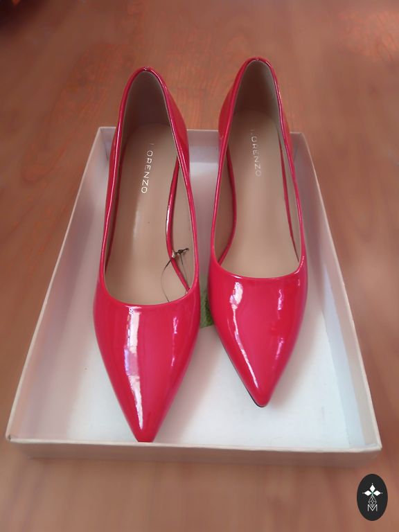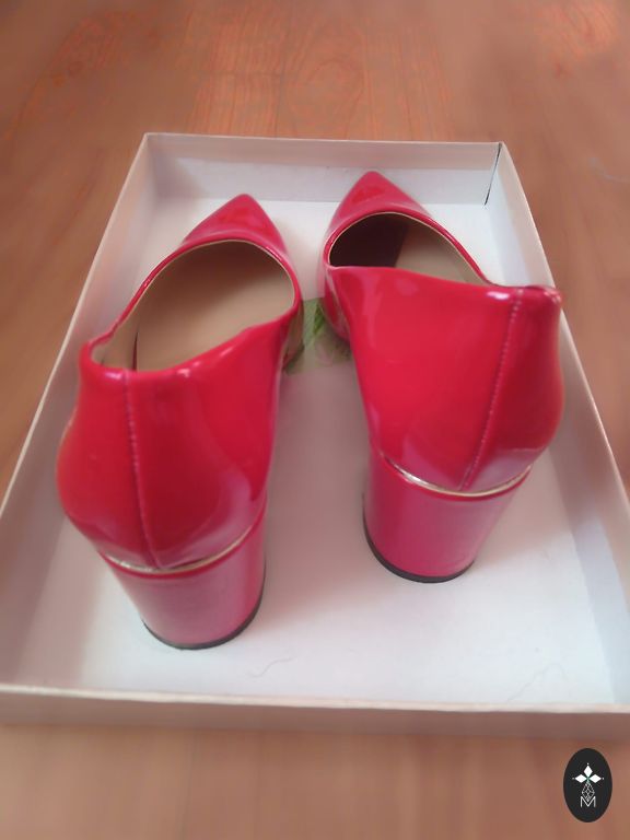 Beautiful, bright red shoes that unfortunately are too small for me. The box says 39, but in reality they fit only 38 (24-24.5 cm foot). New, never worn - waiting for their right owner.