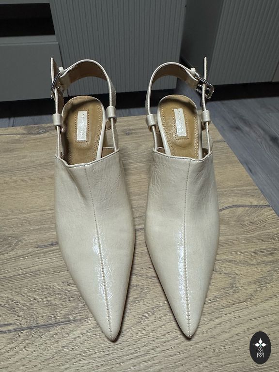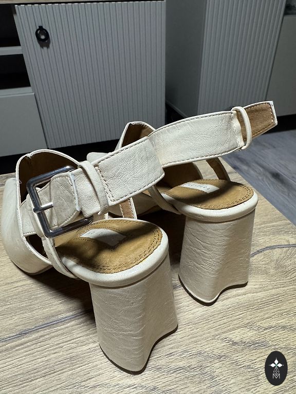 Nedėvėti, tik pasimatuoti. Dešiniojo bato vidinėje pusėje yra šiek tiek tamsesnė dėmė, kaip matyti nuotraukoje.
