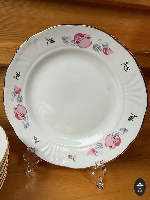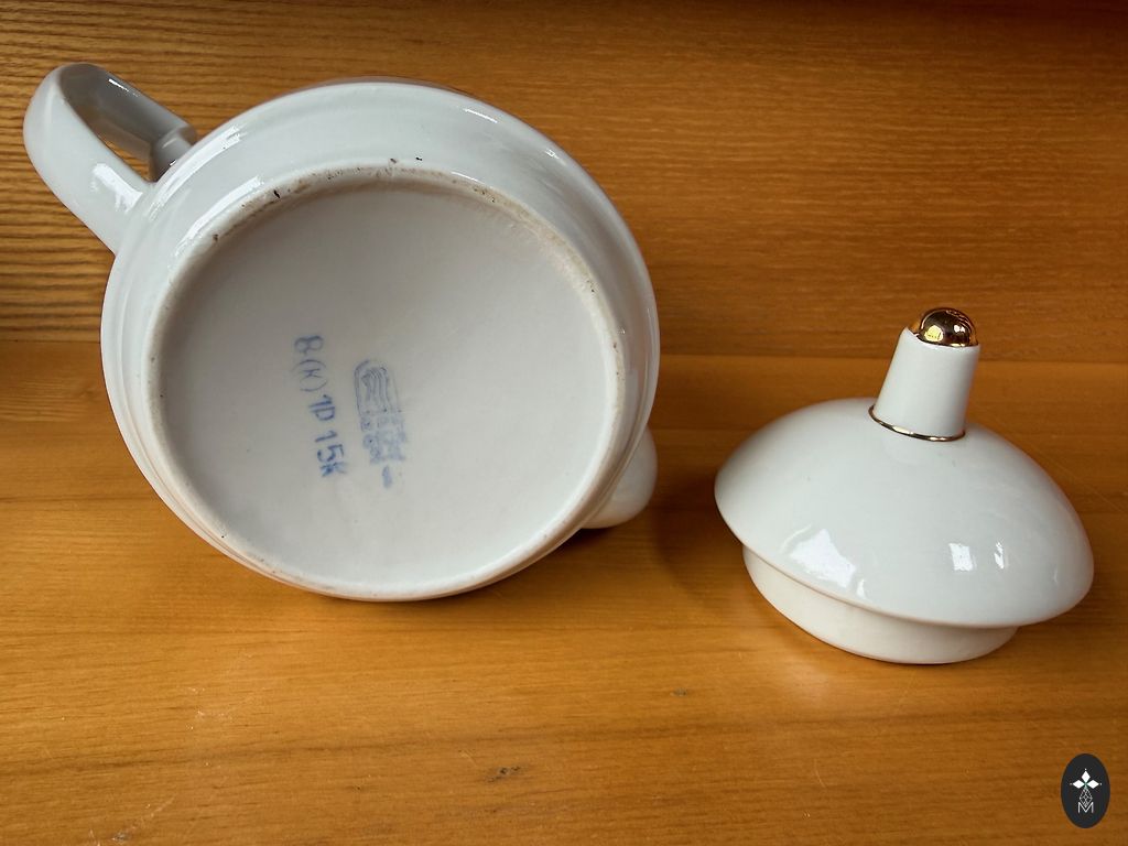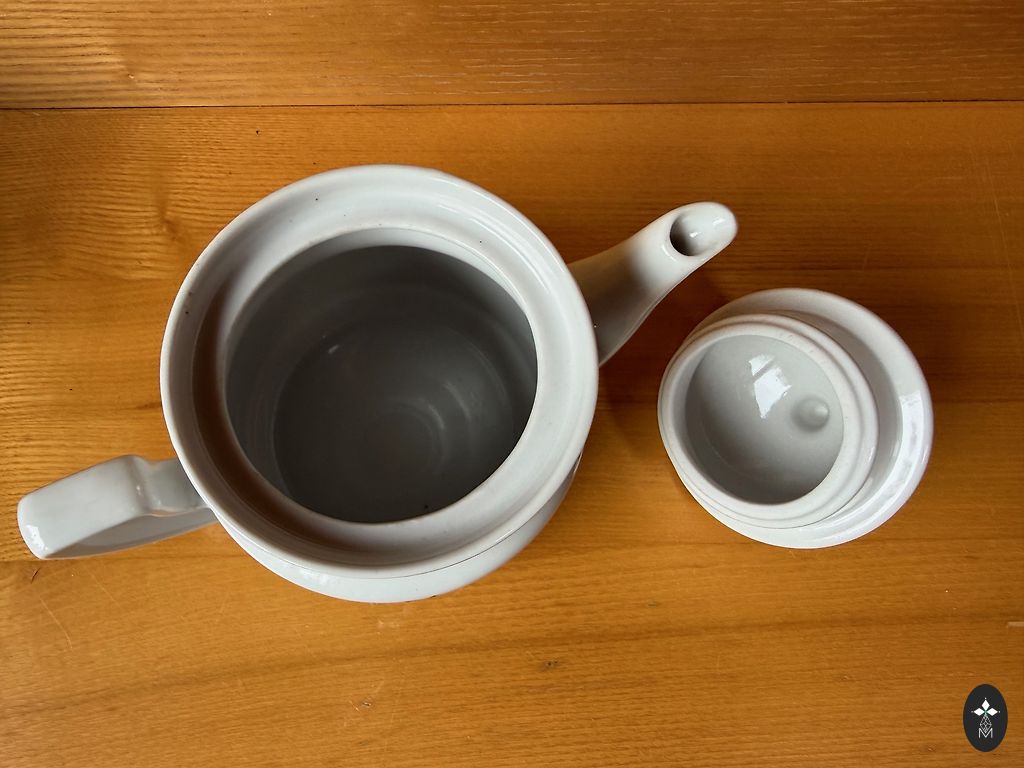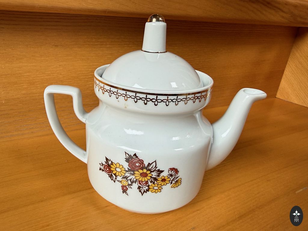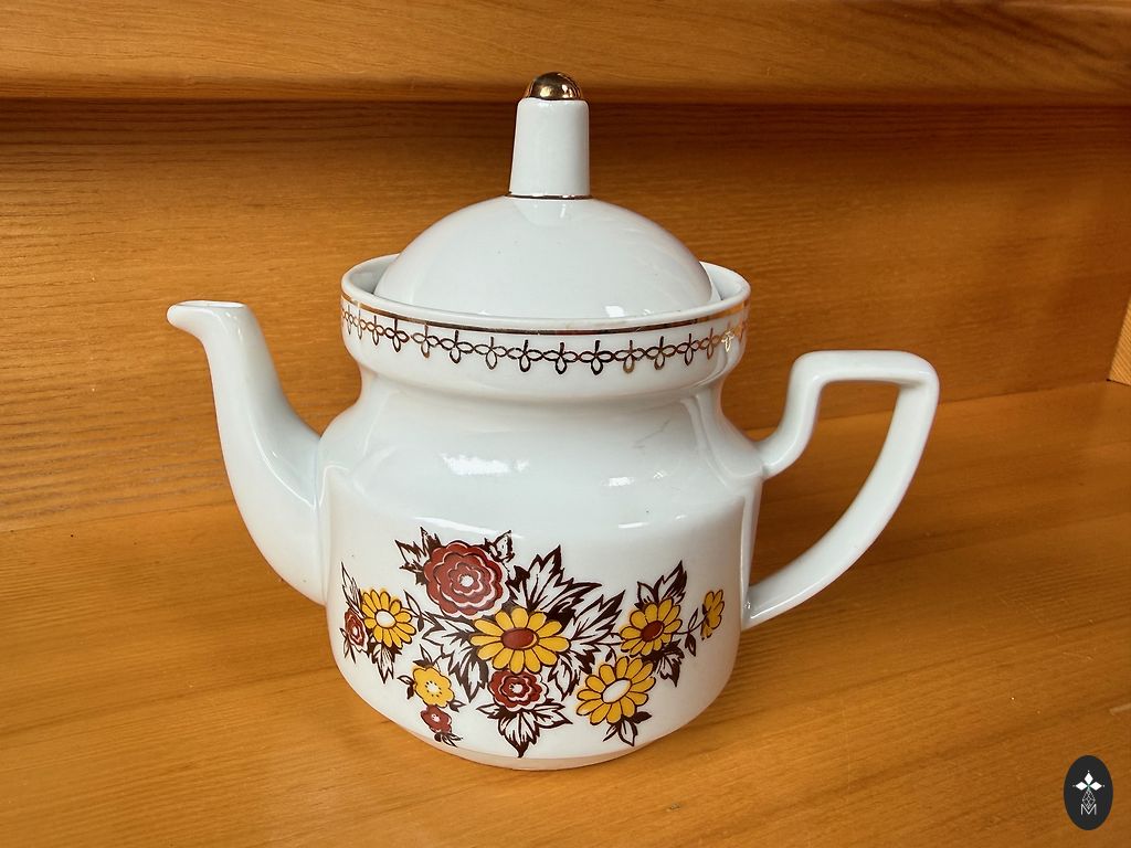 Suur teekann ja neli piala komplektist "IDA". On kasutusjälgi.
