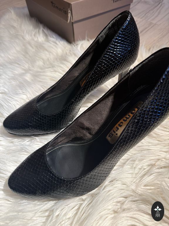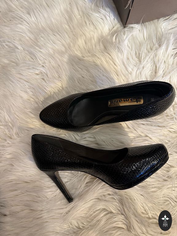 • Svarīgi: Uz zeltītajiem papēžiem ir nelieli skrāpējumi, un iekšpusē ir lietojuma pazīmes (skat. bildes). Valkājot šīs nianses nav pamanāmas - kurpes joprojām izskatās izcili un "dzīvē" spīd un laistās!
