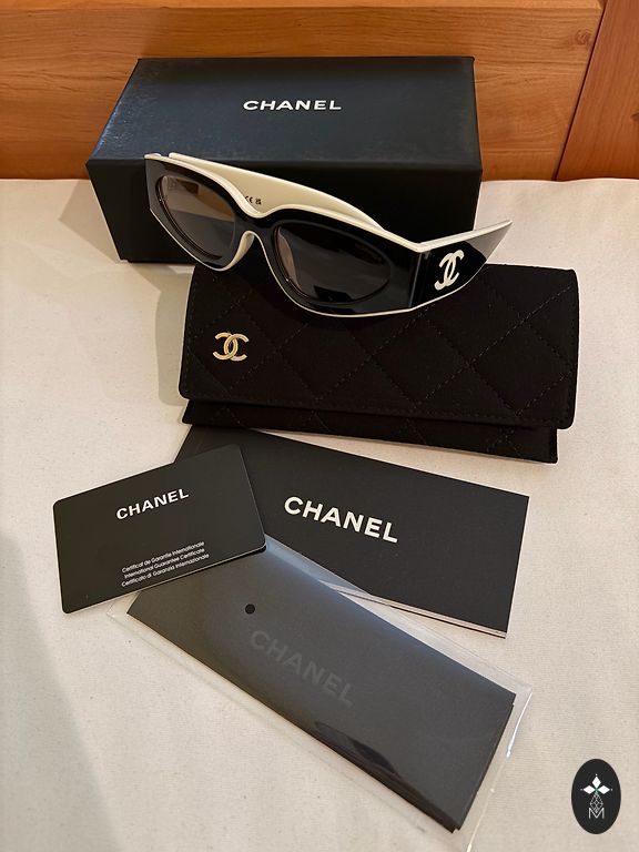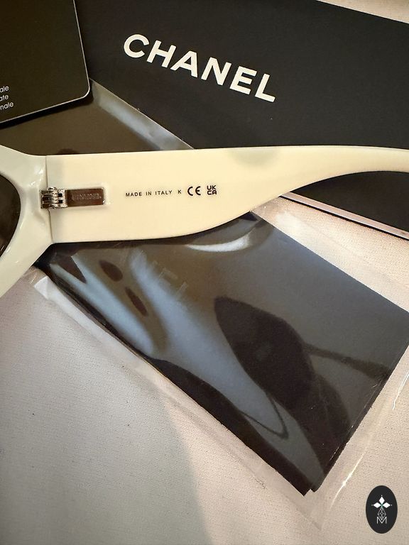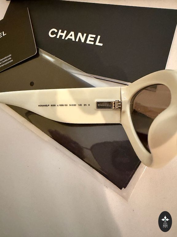 Стильные солнцезащитные очки Chanel стиля, актуальный цвет белый оправы. Выглядят очень стильно и модно.