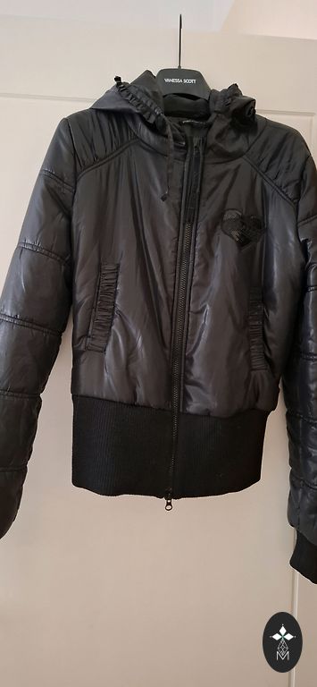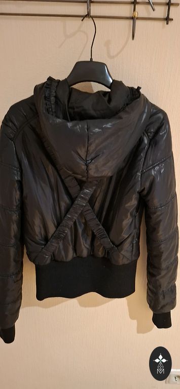 Light, stylish jacket with hood waterproof.zipper, top beautiful buttons. Size 28/42. Suitable for a girl size xs-s