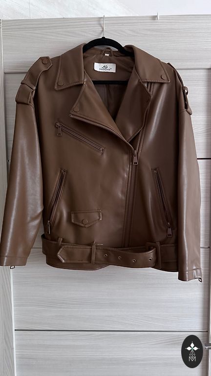 Brown leather jacket.