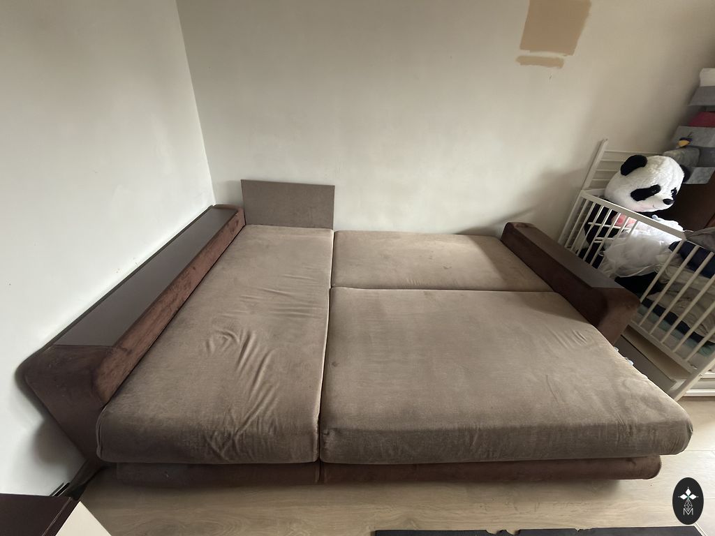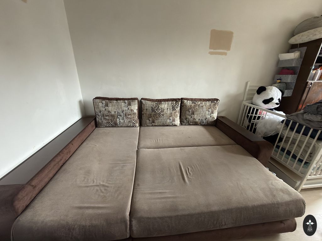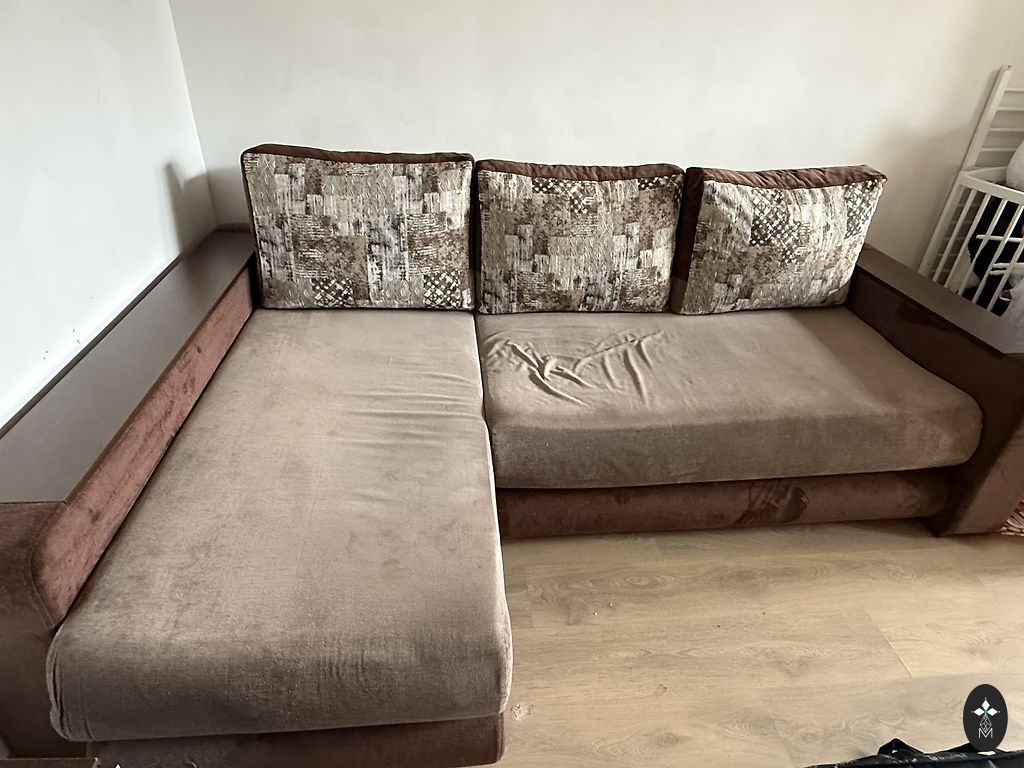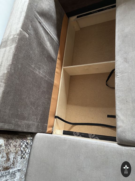 Vintage nahast diivan täispuidust raami ja sahtlitega. Nii küljed kui ka tagakülg on mustriga.