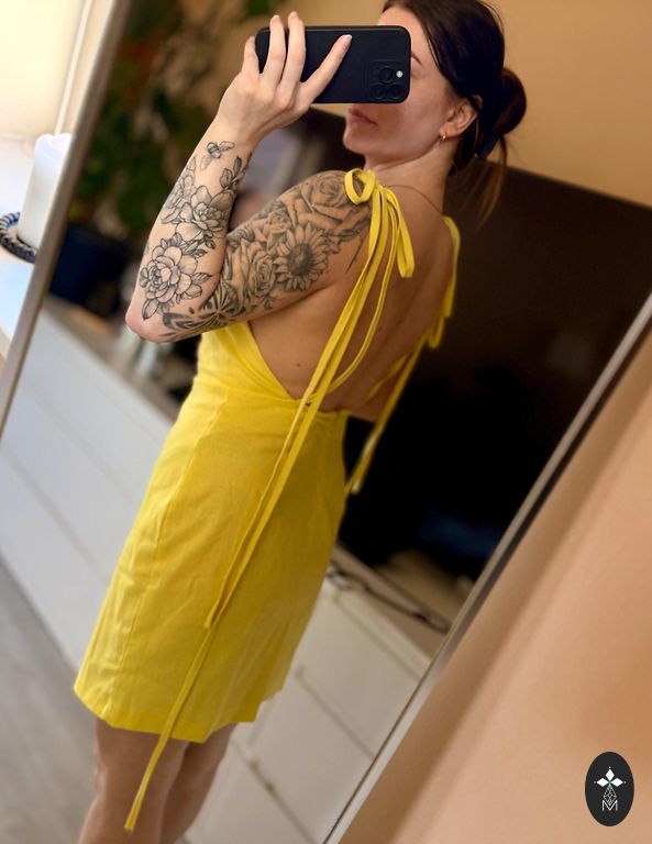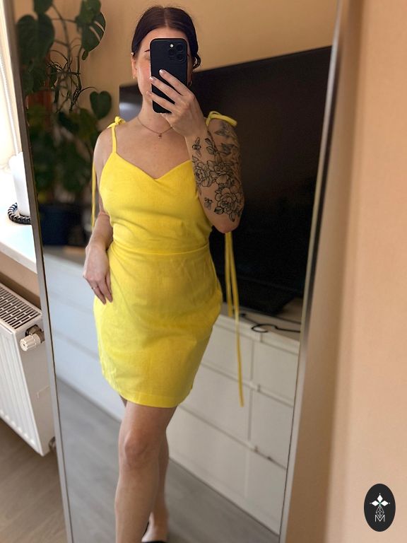 Платье цвета сливочного масла.