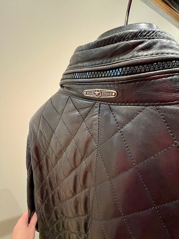 Prigludusi Raider tipo odinė striukė su 2 vidinėmis kišenėmis, nugaroje klostės. Rankovių ilgis - 61 cm, pečių plotis - 52 cm, ilgis - 68 cm. Dešinės rankos rankovės odos struktūra nuo riešo iki alkūnės šiek tiek skiriasi, bet taip buvo ir nauja, kai nusipirkau. Kaip tikra odinė striukė, ji labai gerai kvėpuoja. Super komfortas įvairiomis oro sąlygomis. Įsigyta Londone prieš trejus metus. Nenešiojama, todėl parduodu.