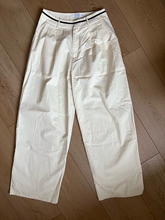 Размер M, приятная ткань, продольная белая полоска с каждой стороны.