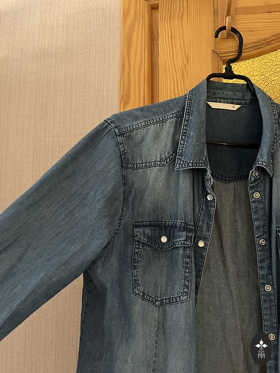 Denimjakk ilma voodrita. Rindkere 45 cm, talje 40 cm, pikkus 101 cm. Koostis: 75% puuvill + 23% polüester + 2% elastaan. Ma saadan selle ära.