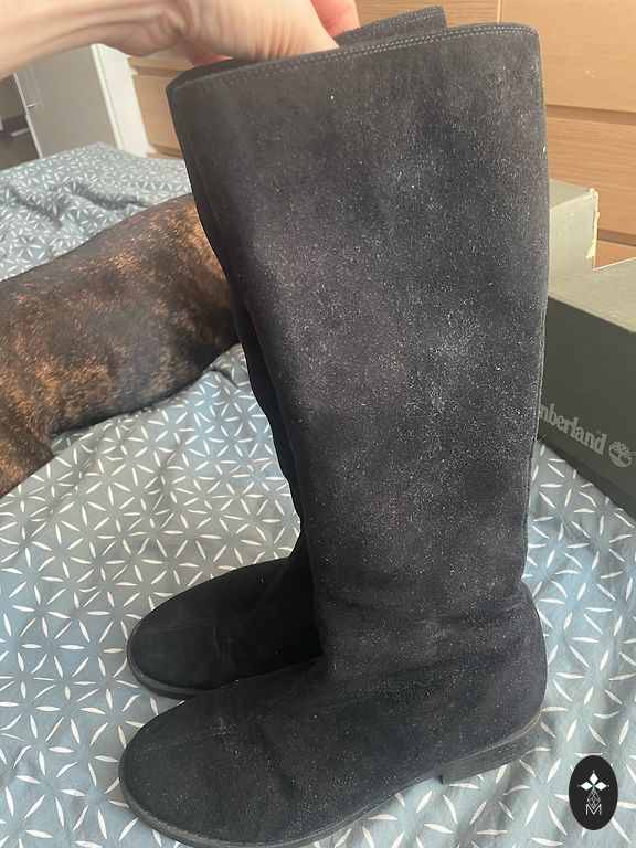 Черные замшевые длинные сапоги
