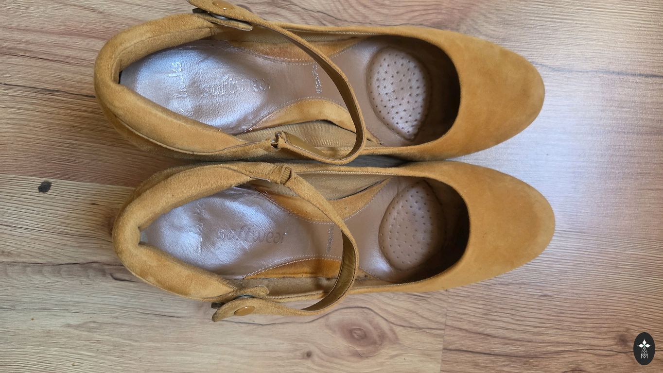 Пандемия внесла изменения в рабочий режим, и теперь нет необходимости в фантастической офисной обуви. Так эти красавицы стоят без применения и ищут новую хозяйку. Колодка очень удобная, высокие каблуки совсем не ощущаются. Каблук 11 см, стелька около 26,5 см.