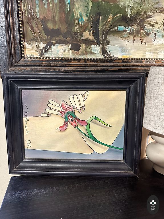 Maali puidust raamis, kuid võimalik osta ka ilma raamita. Väga hästi säilinud. Maalitud 1995. aastal. Mõõtmed on näha pildil. Asub Liepājas.