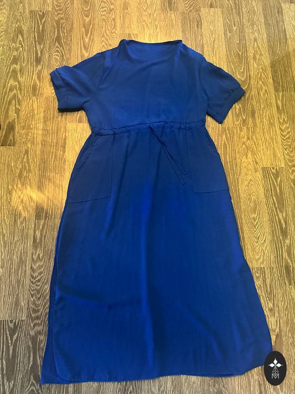 Nupp lõike vähendamiseks (piltidel) Elastne kumm kaenlaalustes ja vöökohas. Suuruseks on märgitud 40, kuid sobivam oleks suurus 38. Pikkus 119 cm Varrukad (mõõdetud kraest) 71 cm