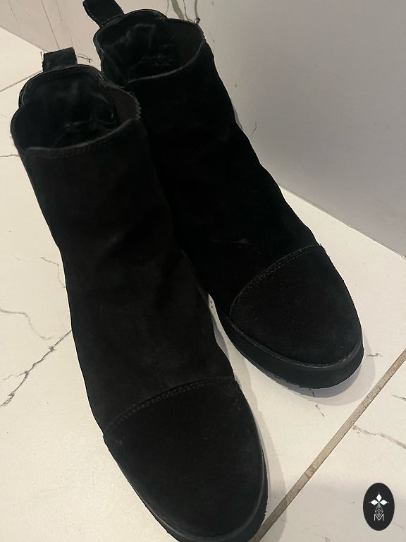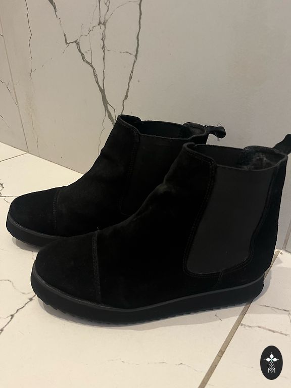 Pārdodu Skechers Australia zamšādas melnus zābaciņus. Izmērs 38. Kā trūkums vienīgais uz labās kājas aizmugurē mazliet nobrāsts, bet valkāšanai tas netraucē. Var atlocīt to leopardīgo un nēsāt neatlocītu vienkārši melnus. Papildus foto ir uzspiežot uz komentāriem.