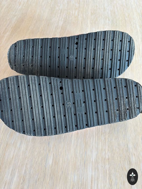 Light summer sandals in a wood-brown color. Very lightweight, practically weightless on the foot. Stable heel, 7 cm. Straps inside lined with a soft, fleece-like material.